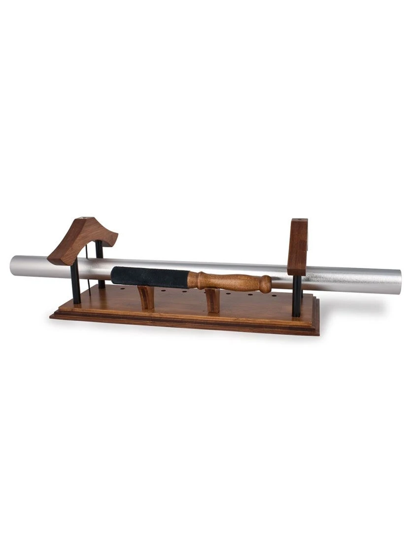 - Teak finish ash wood, satin black aluminum supports, 1 brushed silver aluminum tube, mallet